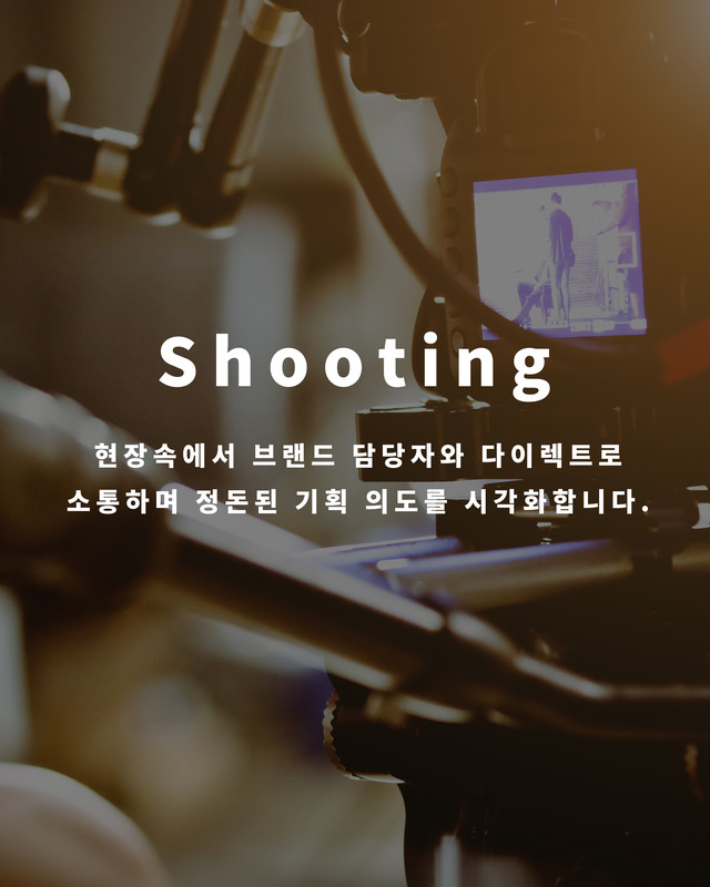 이미지와 영상이라는 매체를 통해 다채로운 형태의 콘텐츠를 제작합니다. 최신 트렌드와 기술을 주시하며, 브랜드에 특화된 창의적인 솔루션을 찾아냅니다.